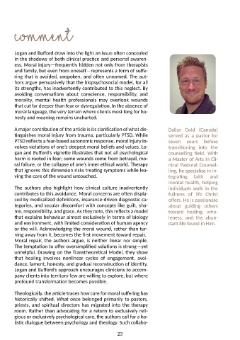 �nguishes moral injury from trauma, par�cularly PTSD. While served as a pastor for